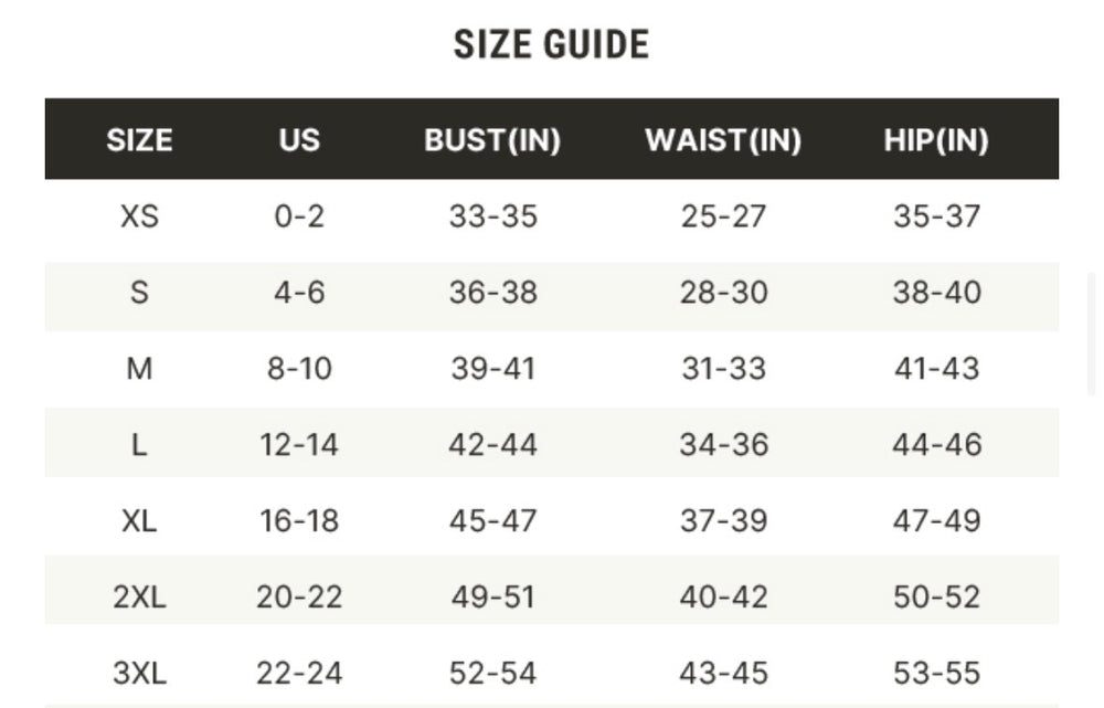 A: We offer a comprehensive size range from S to XXL to ensure the perfect fit for every body type. Our bodysuit is designed with a fitted silhouette that hugs your curves while providing comfortable support. If you're between sizes, we recommend sizing up for a more relaxed fit.