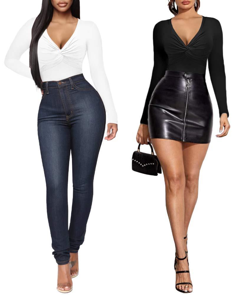 Elevate Your Confidence with Our Premium V-Neck Twisted Bodysuit